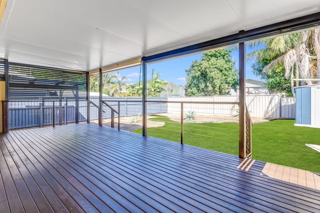 The home features a large, open-plan kitchen and dining area, perfect for family gatherings and entertaining. Enjoy outdoor living on the expansive covered rear deck, ideal for relaxation while taking in the cooling bay breezes. Inside, you'll find polished timber floors throughout, adding warmth and charm to this spacious lowset home.