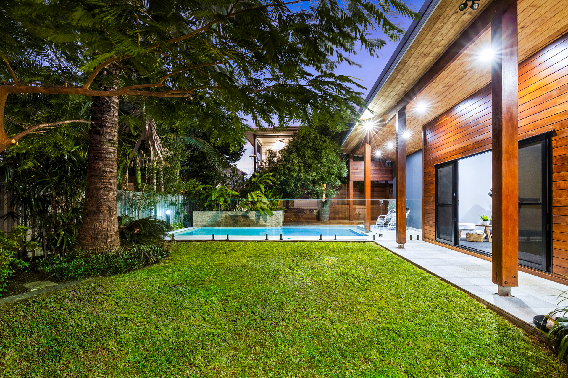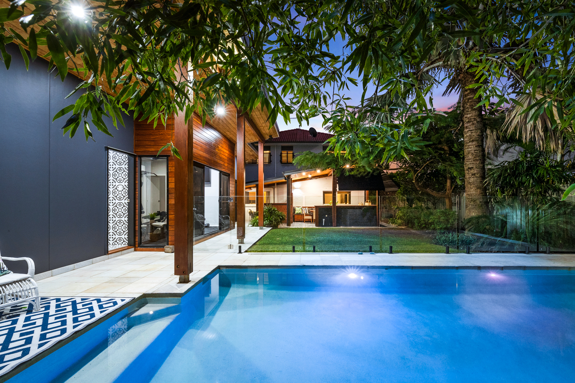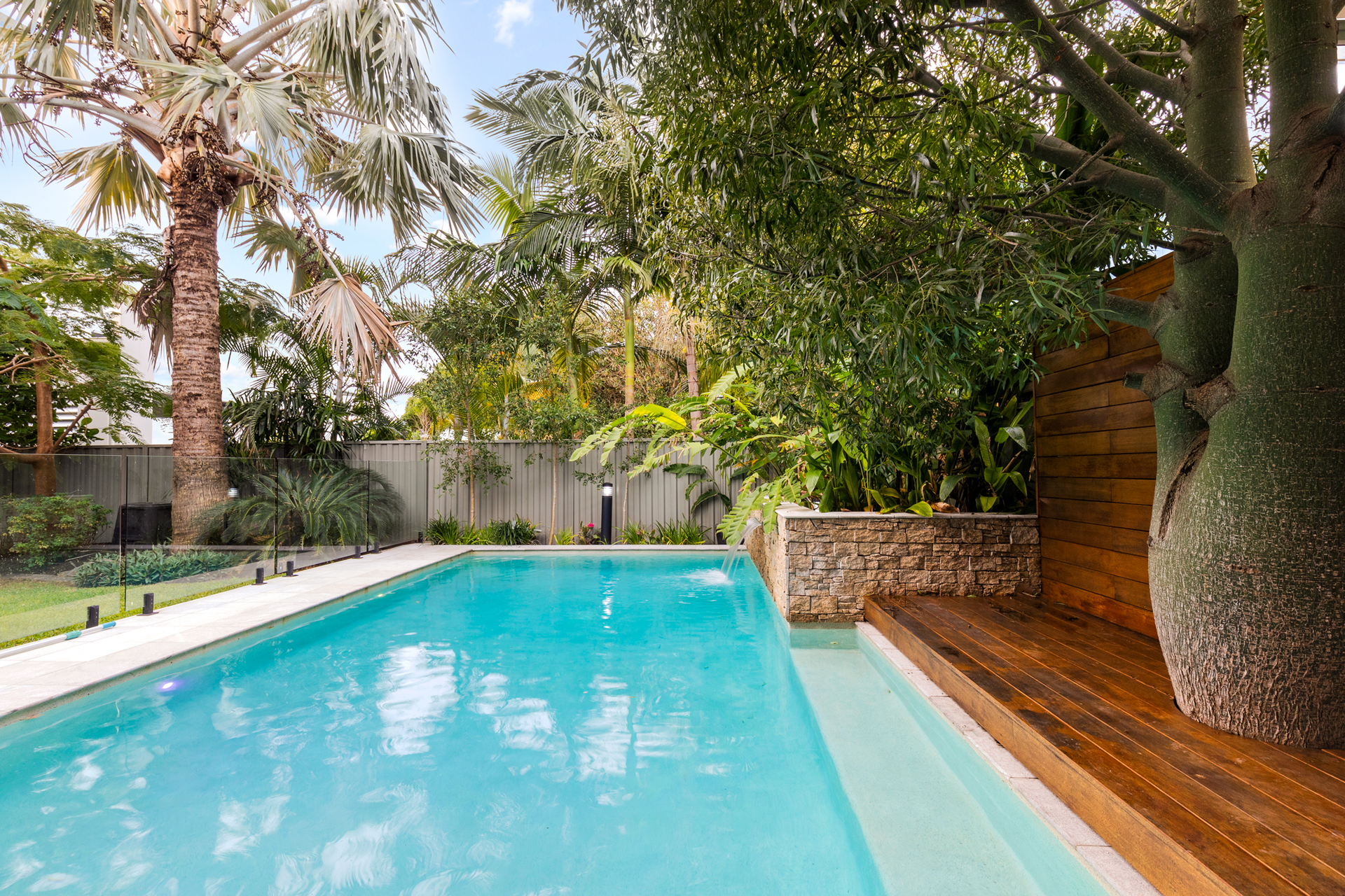 - Large in-ground swimming pool with waterfall and landscaped surrounds - Four built-in bedrooms plus separate built-in study/fifth bedroom - Master including large walk-in robe and stylish ensuite with dual vanity - Two additional exquisite bathrooms with floor to ceiling tiling and frameless glass - Separate laundry/reverse cycle air-conditioning/two huge storage rooms/solar electricity with 3 phase power for future extension - Internal lift