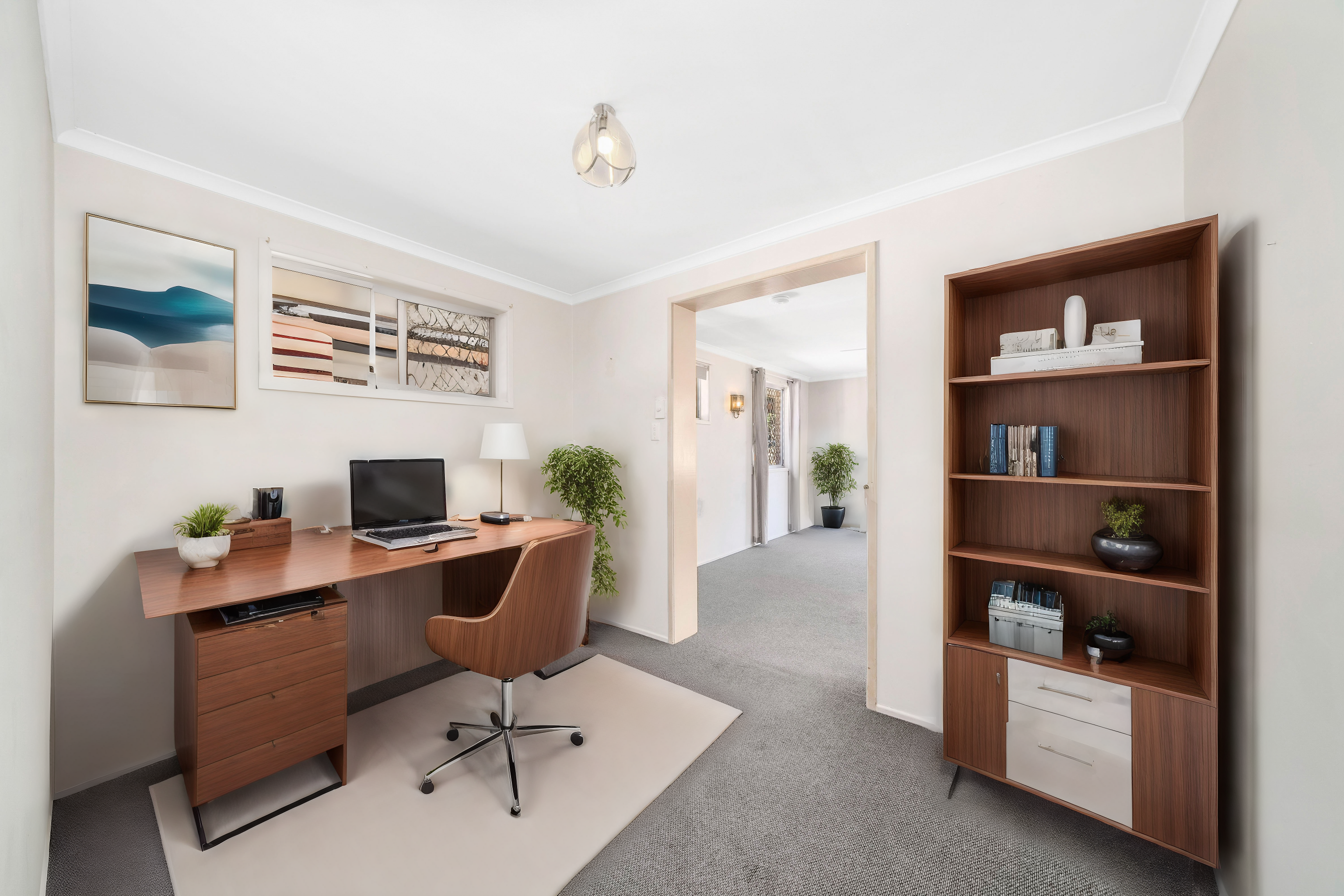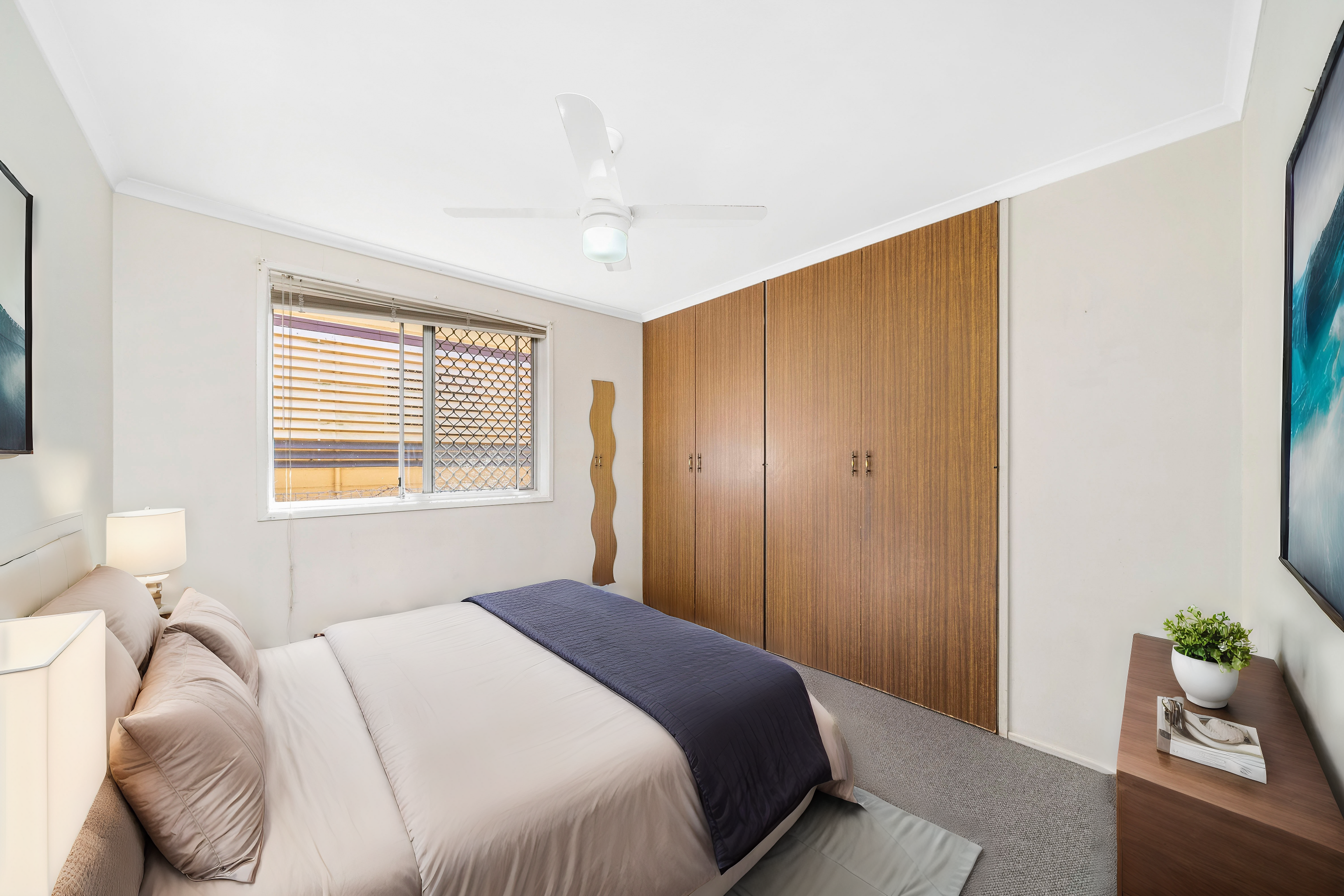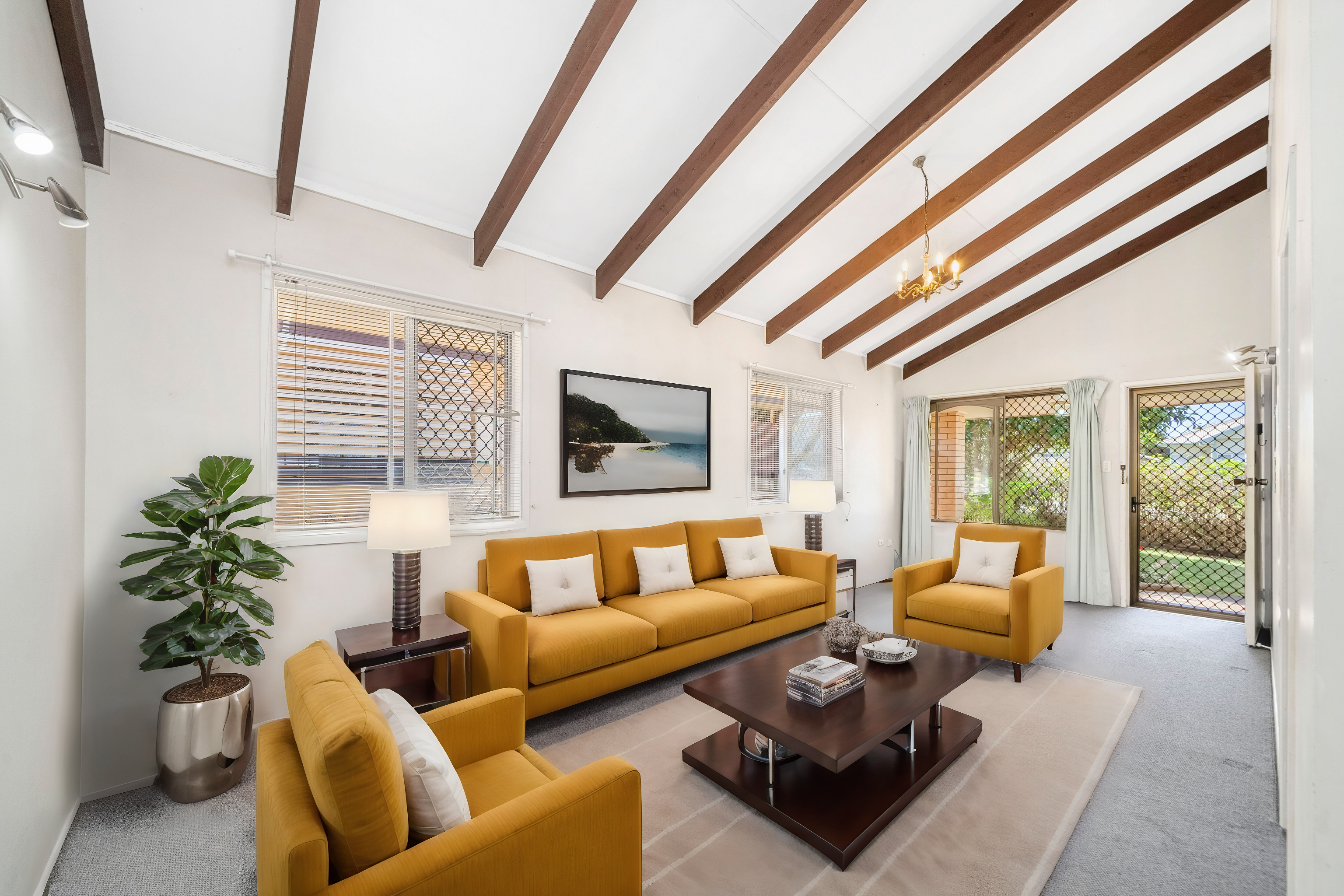 Step inside and discover a harmonious blend of space, comfort, and timeless charm. The expansive living area, featuring raked high ceilings, invites you to relax in a space that's both airy and inviting. The considered layout means that the living areas deliver privacy from the bedrooms, so you can seek peace and quiet with ease.