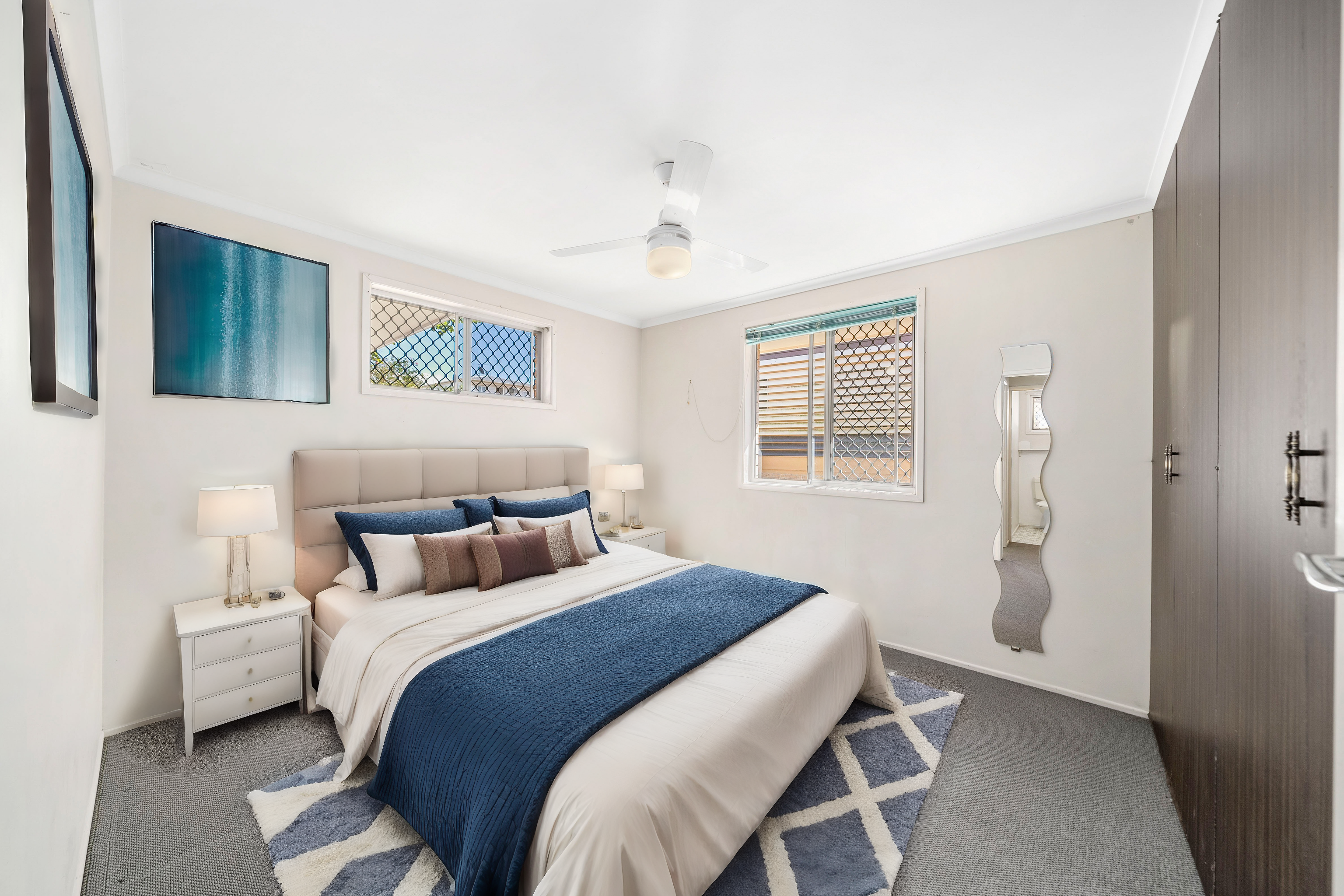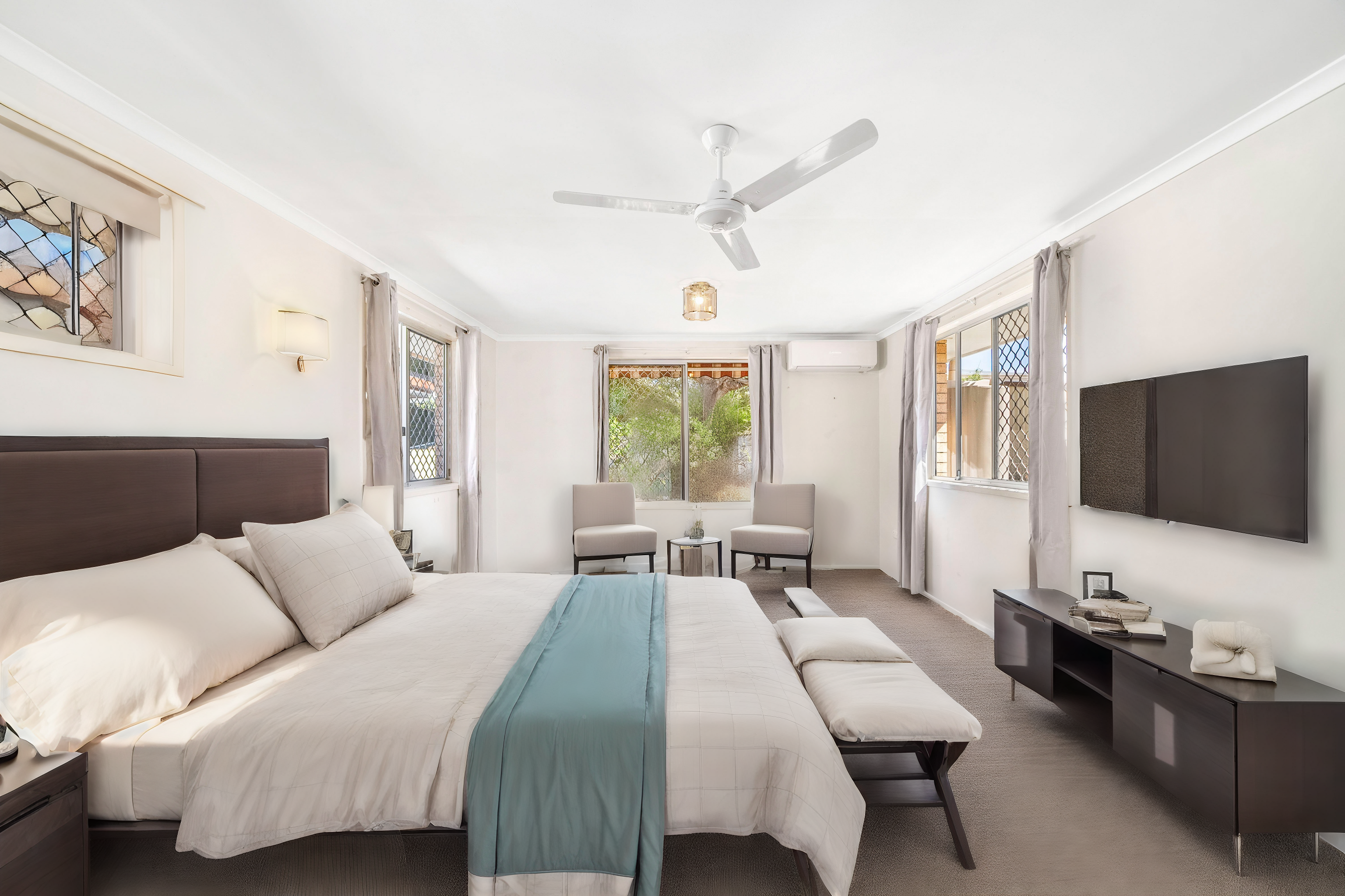 The spacious kitchen, equipped with plentiful storage, is complete with a Westinghouse oven. The main bedroom, complete with a sitting area or study room, offers a versatile space tailored to your lifestyle needs.