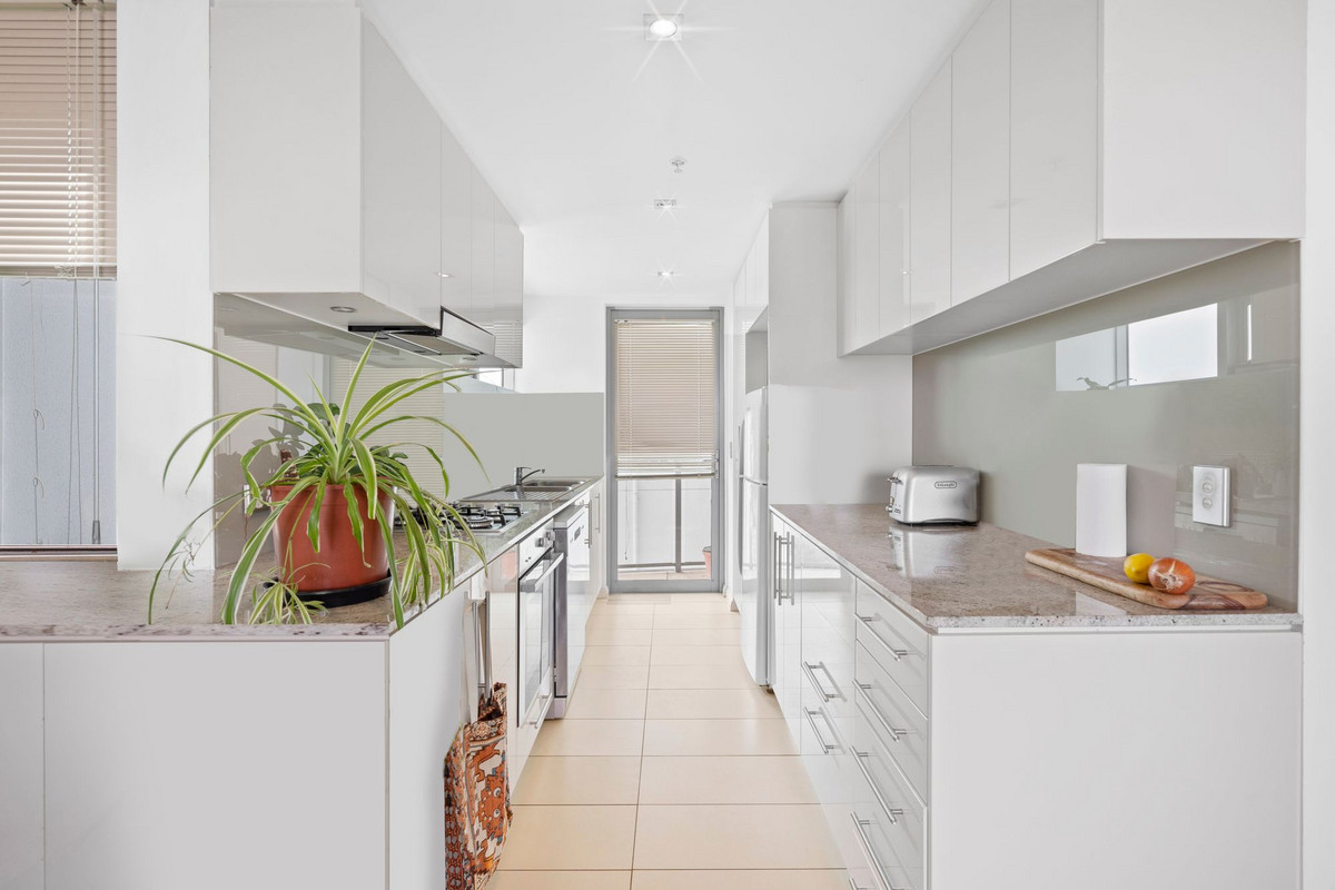 Designed with an emphasis on both style and functionality, the apartment welcomes you with a generous living and dining area that seamlessly flows into a fresh and sleek kitchen. Equipped with modern appliances, ample cupboard storage, and a gas cooktop, this kitchen equipped with everything you need.